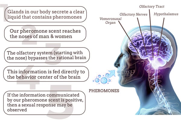 The Olfactory System detects pheromones, which positively communicates attraction and desire. You're more likely to draw in individuals you like if your pheromones are stronger.Ā Pheromones play a direct role in attracting people sexually. They can trigger quick chemistry, desire, passion, and even conception when released.