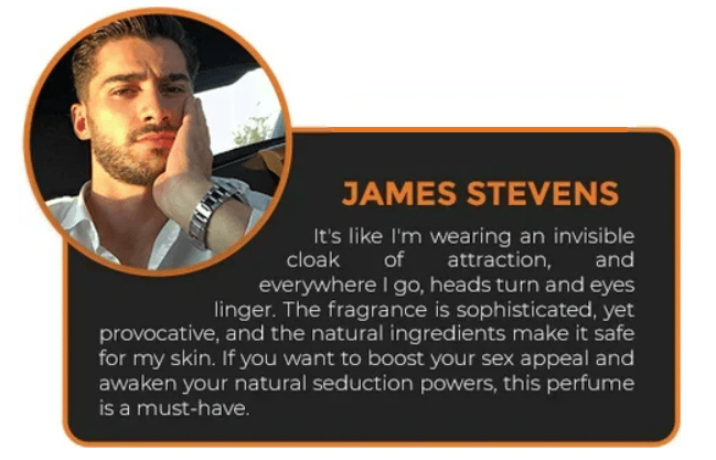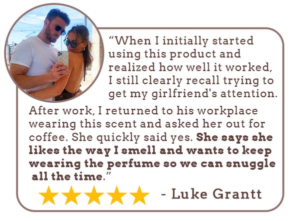 āI've been using this perfume for a while now, and I have to say, it's simply irresistible. The alluring blend of natural scents and pheromones create a seductive aura that drives women wild with desire. It's like I'mĀ wearing an invisible cloak of attraction, and everywhere I go, heads turn and eyes linger.Ā The fragrance is sophisticated, yet provocative, and the natural ingredients make it safe for my skin. If you want to boost your sex appeal and awaken your natural seduction powers, this perfume is indispensable.āĀ - James Stevens, Lewisville, TX